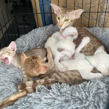 We purchased our first Oriental Shorthair from a reputable breeder and went to one cat show. We were hooked! After earning several titles, we decided we wanted to continue to breed and show these wonderful cats!